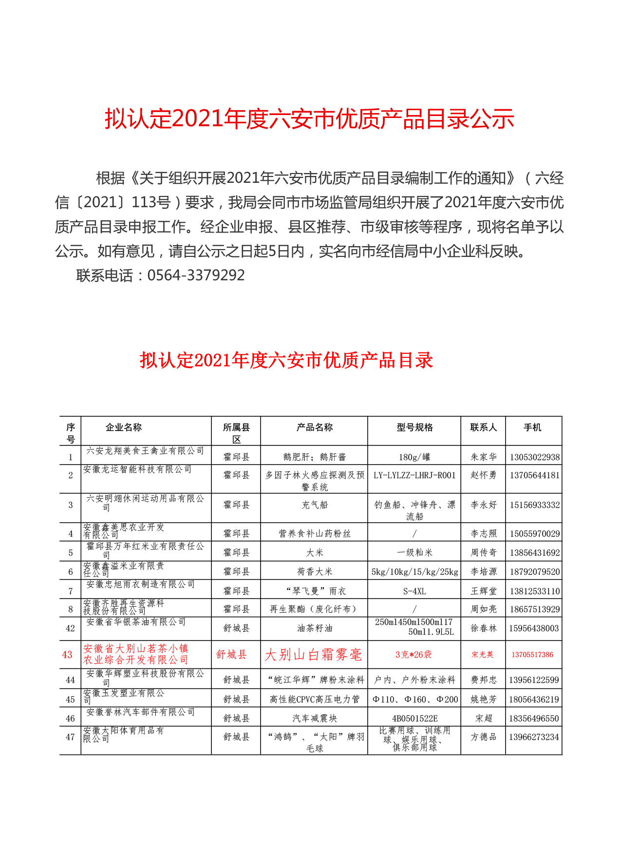 白霜霧毫--2021六安市優(yōu)質(zhì)產(chǎn)品目錄